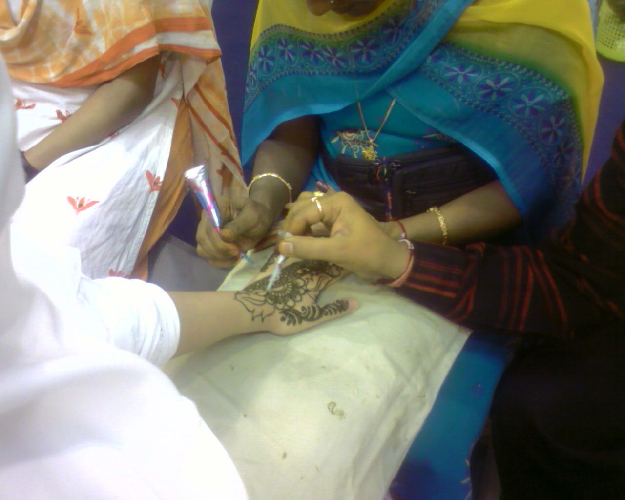 Whilst being hennaed..notice e extra hand? whose is it?