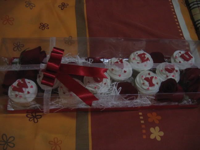 I feel tat its so surreal..I went to Kak Ayu's multiply acct aka simplycupcakes..droolin over all her creations..n now..I am actually seeing it..n soon, I'll be eating it!! woo hoo!! but seems so sayang to eat it.. :P