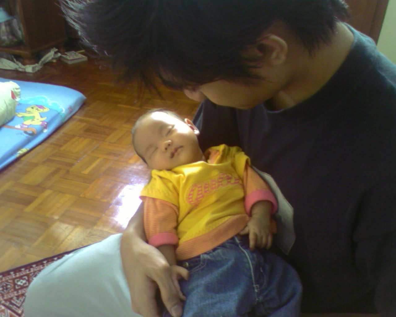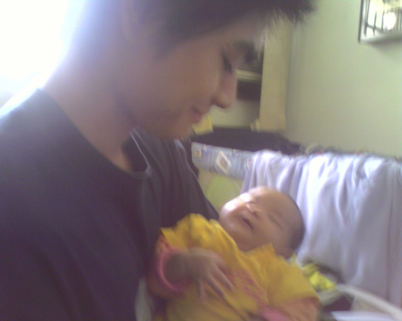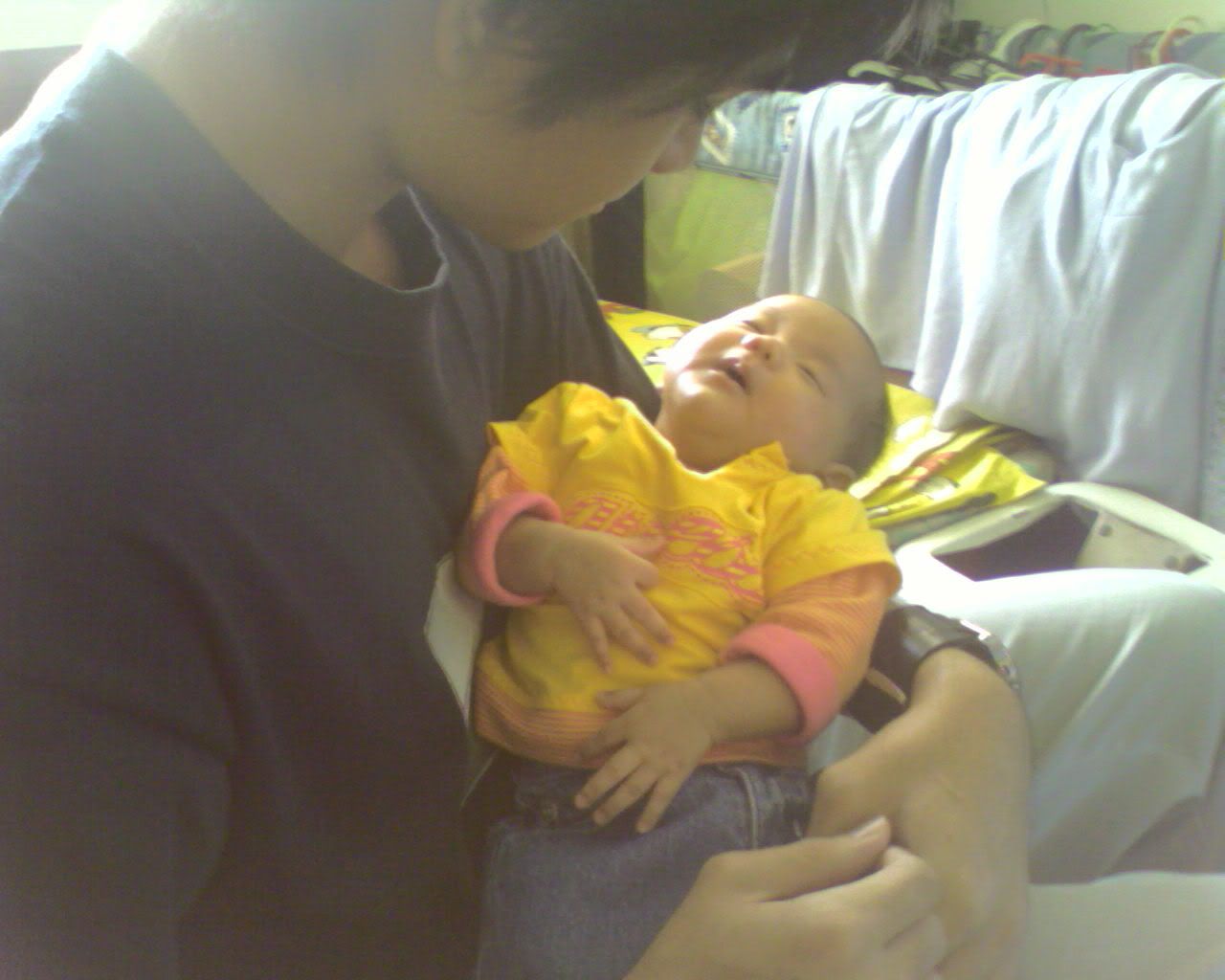 I've asked my dearie before whether he dared to carry young infants n he said yes..So, after he sheepishly answered Kak Aida, Kak Aida n e rest applauded his bravery n I told him, in front of all, tat I will test him later..heheheeee..so did he pass??