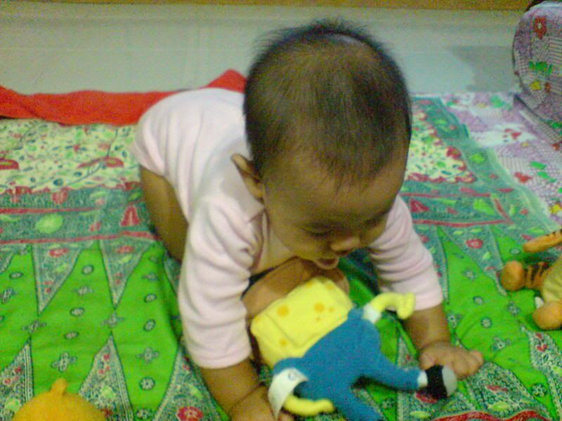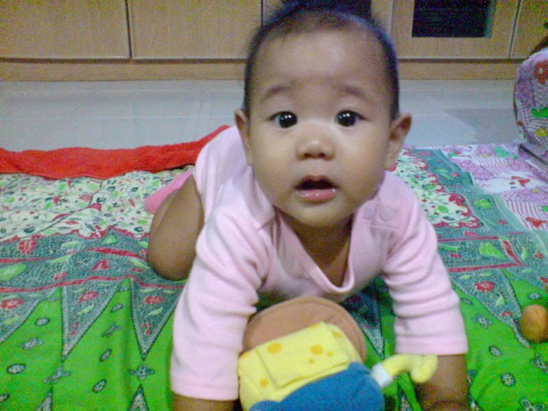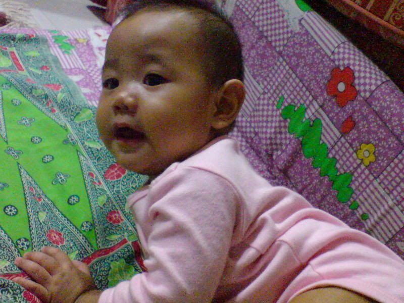 I juz adore dis lil gal..She is exactly 7 months old todae..Meanin on my solemnization day, she will be 1 year n 1 month old..I tink she will be oh so cute then..N perhaps wit longer and more hair? :P