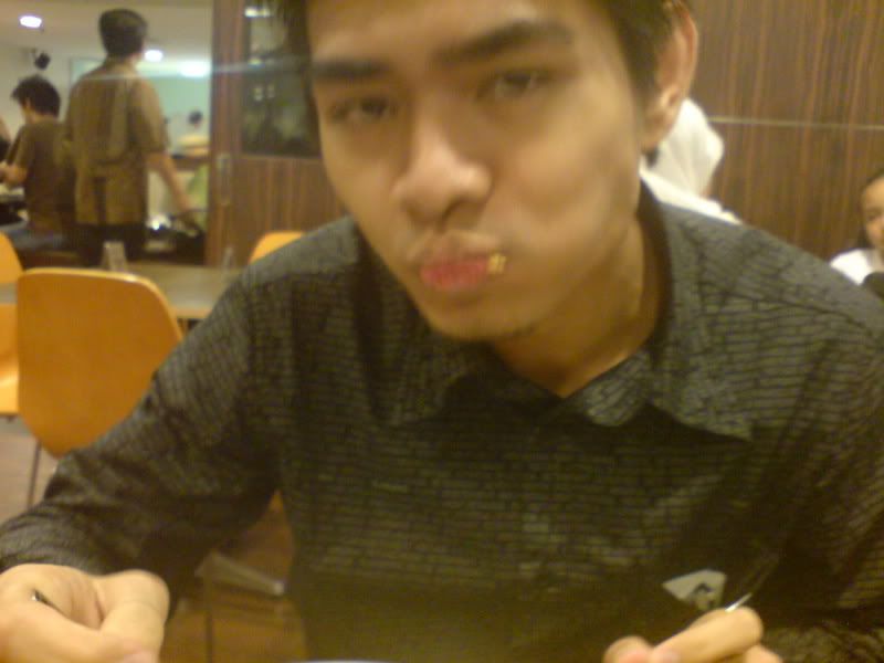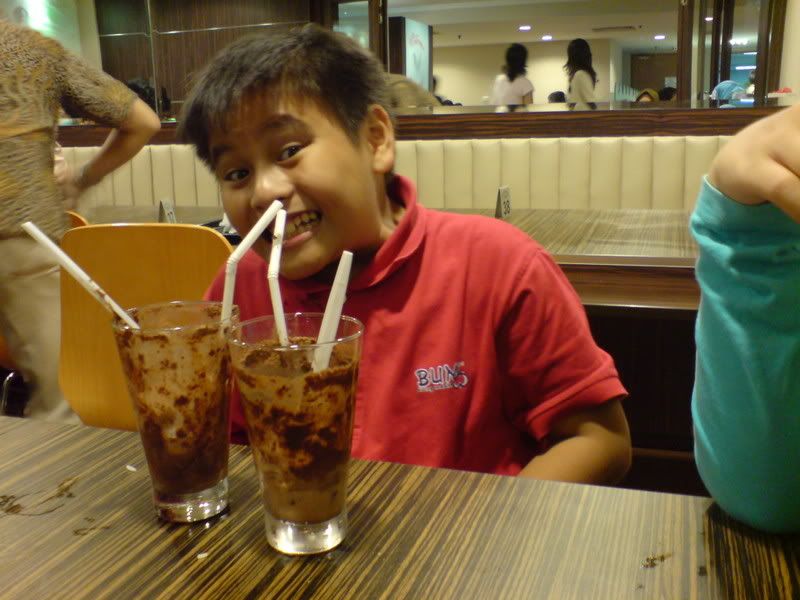 Nas drank 2 Milo Dinosaurs cos e sambal was so spicy..When I took dis pic, I juz wanted to show how many Milo Dinosaur he drank and how small e glasses were..After I snapped dis pic, we laff as it seemed like e straws were inside his nostrils!! Hahaha!! Totally unintended.. :P