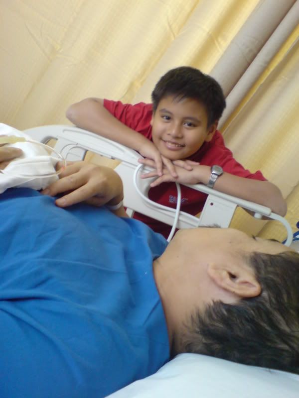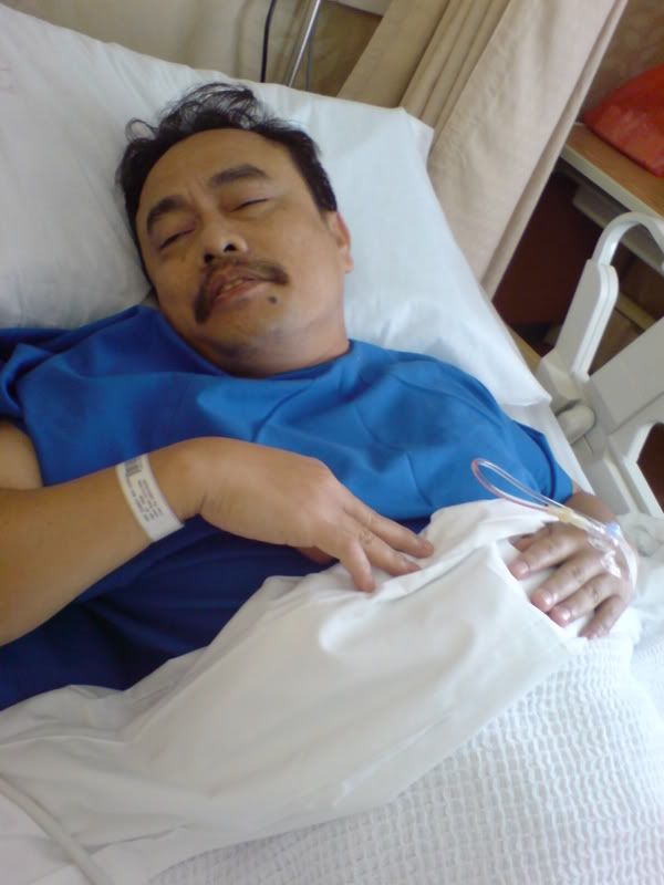He is out and he is stoned..Hehehe..He groggily said tat e surgery started @ 12 plus instead of 11.30(cos e surgeon was late, poor work ethics if u ask me), n e surgeon found not 1 but 2 hernias..So tat explains why e surgery took so long..Its supposed to take 1-2 hrs..In e end, It took almost 3 hrs!