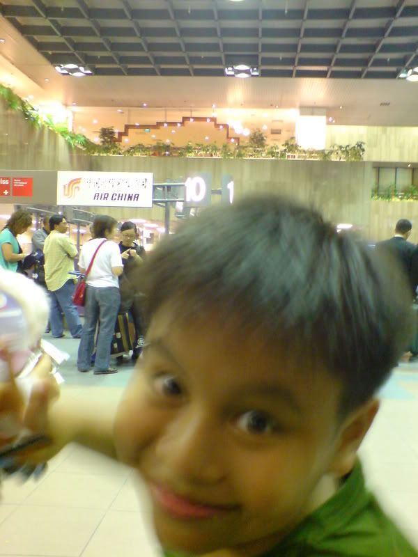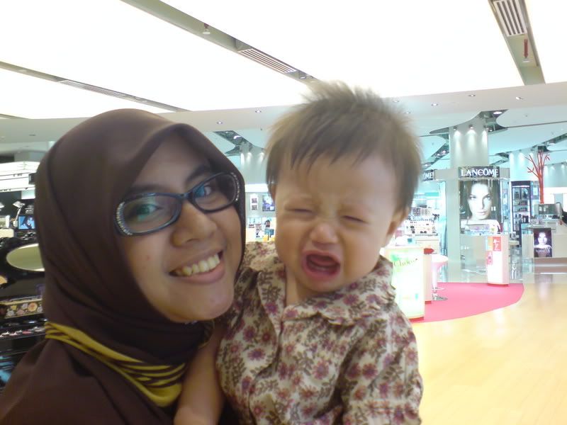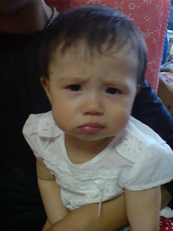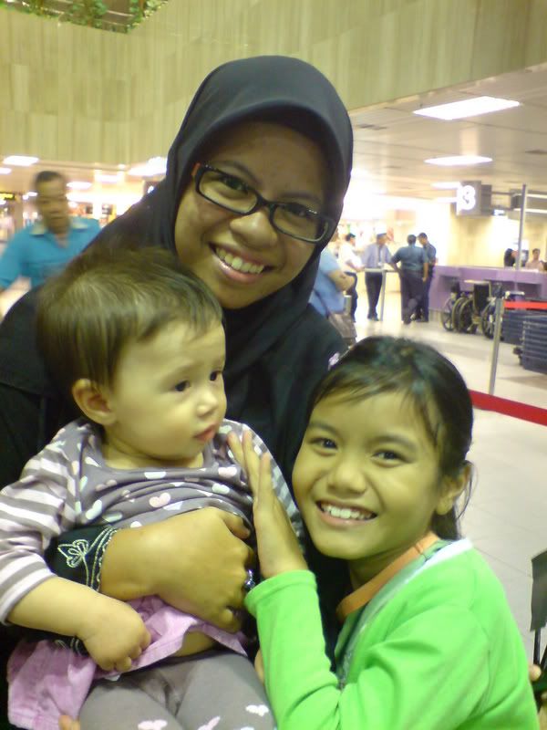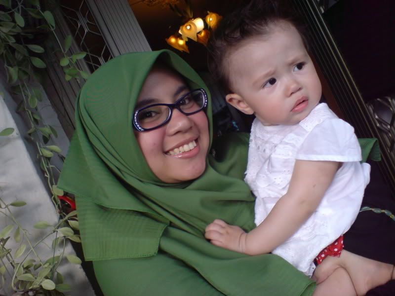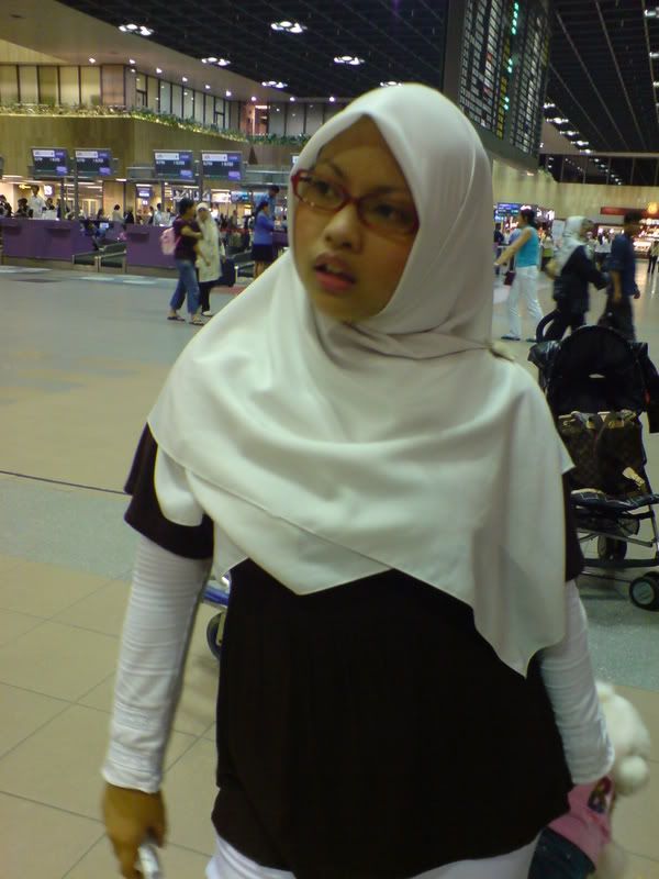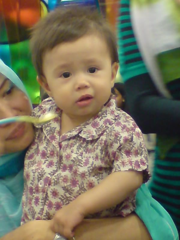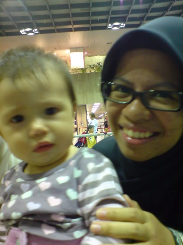 I just came back from Darling's aunt's place..She wanted to take my measurements as she will be sewing my baju for the hantaran..I found out that my waist measurement has decreased!! Yay!! But my hip measurement has increased!! ARGH!! I am becoming more curvy, just like Darling always wanted..Kuatnya doa you, Darling! :POh! All of my aunts are at my house now..Can hear them chatting away so loudly..If other people hear them chat, they might think that my aunts are arguing when in fact, they are just happily chatting away..Hehehe..ARGH!! One commented that I shouldnt been meeting my Darling from now onwards..She claimed that later on my wedding, I wouldnt be sweet (manis)..My mummy agreed!! *blueks*My mummy had assigned one of my aunts to tie money to the brooches worn by the kendarat..Red notes, babeh! They are also busy flipping through the latest Pengantin magazine and commenting on how my tudung should be worn..How big my crown should be..Crown?! I love crowns!! But small ones please!! They say they want my crown to be bigger than CT Nurhaliza's..Hahaha!!Actually, I already wrote an entry at 11 am just now..I left my laptop to upload 3 more pictures and I went to iron my clothes..When I came back, the laptop was switched off!! It just died!! ARGH!!!!!!! All my hardwork gone!! I spent close to 2 hours, typing that entry!! Now I have to rewrite it and I hope I can remember what I wanted to share.. :PLast Sunday, I accompanied my honey bunny for his haircut..Like finally!! I asked my Darling if he had noticed anythin different about my makeup..He nonchalantly said that there was nothing different..I started to nag about him not paying attention to me, bla bla bla..After I finished nagging, he looked at me and said, 'No eyeliner, right?' EEEE!! So cheeky!! He knew that and yet he let me nag!! That's us on the stairs from my home.. :) All ready for a haircut! Hahaha!! A sight you dont see every day..Darling with clips on his hair! Hmmm..I think when we have our own place, I shall be clipping his hair with butterfly clips!! :D Close-up.. Back view..Your hair is so much neater now, Darling! Reminiscing your old haircut? Dont worry, you will have to cut again before the wedding..Hahaha!!!The salon that we went was at the area where Darling used to frequent when he was still working at a sec. school..He frequented this particular bubble tea shop and he could claim a free drink now as he bought 10 drinks already.. So here we are, waiting for that free drink.. When I used this pic for my msn display pic, Darling asked, 'Hensem tak?' 'Hensem skali,' was my reply.. :) Chantiq tak, Abg? :PWe were starving so we went to Mr Prata as Darling was craving for mee goreng + egg and I wanted prata.. :) His craving was satisfied.. So was mine.. :)After our date, I rested at home..On Sundays, I rather rest at home and recharge my body/mind/soul before I teach the following week..I most probably do my lesson plans as well so I do not like to be disturbed on Sundays..I will refuse to go out on Sundays unless there's a reason to..I wish some people would understand..They work normal 8-6 day job or even shift work BUT they do not bring work home..Sundays are very precious to me..Label me 'weak'..Label me 'not sociable'..I dont care..Clearly you do not know me..Now its even harder for me to go out..I have so much to do..Wedding is coming, Darling is busy with assignments/presentations..I have yet to touch my research paper which was due last month..Yikes!! :(I thought I could rest when I received a mms from my mummy..It was a picture of Iman..I was like, 'Ehh..Ni kan Iman..Ehhh!! That's her granny's home furniture!! Iman is in Singapore?!!!'I called my mummy and found that Iman and family were currently in town as her daddy had to do a presentation..All of us quickly got ready and headed to my aunt's place..I was soo excited!! I never met Iman in person before..I only see her through the webcam..If only I had followed my family to London last December..P made me attend some workshops..I didnt even get to teach what I have learnt as I was told to teach Nursery again this year..Those workshops clearly were a waste of my time.. :S Iman and me!! :D Hello! I am Iman..Its so hot here, I am sweating buckets! :PARGH!!!! This is the 2nd time my laptop die as I am blogging..STUPID LAPTOP!!!!!Luckily, I saved but up to this point only..*blueks* Yay!! I finally have her in my arms!! :D Kakak Girl and Iman.. :) I kept staring at her as I just cant believe that she is right in front of me..Right in my arms.. I got to feed her too! :) She tried to crawl but she couldnt as she was so sticky that she was sticking onto the marble floor..Hehehe!! High on bananas.. Enough pics already! Comot Iman! :POn Tuesday, I received a call from my mummy, telling me to join the gang as they were heading to Orchard for sight-seeing..I was rather tired but I decided to join as it was a rare chance to go out with Iman and the gang..I called my cousin who was with the gang and she told me to go to Vivocity as they were heading there..So I made my way to Vivocity.. Iman and the gang! Cutiepie Iman.. :) Such a cutie.. Catching some zzzzzzzzzs..Check out that hot red shoes! Awwww.. Hahaha!! She was cranky, okay! Due to some reason, she loved my mummy..So much that even when her ummi pretended to take her back, Iman would refuse..*jealous* Being guarded fiercely by her Singaporean family.. My meal at 9pm..I hate to break my no eating after 8pm rule as I was starving! Daddy's fav lamb steak..He claimed that Secret Recipe has one of the best lamb steaks that he has ever tasted.. :)On Wednesday, Iman and family had to leave Singapore..Sobs sobs..We headed to the Airport to bid them farewell.. Bride-to-be and her bridesmaid.. Bride-to-be and her other bridesmaid.. Bride-to-be.. :) Her flowergirl, Iman.. Iman with those whom went to London..*jealous* Iman with her adoring fans.. Hehehe..Why everytime there is a pic of us, she always appears to be crying? An