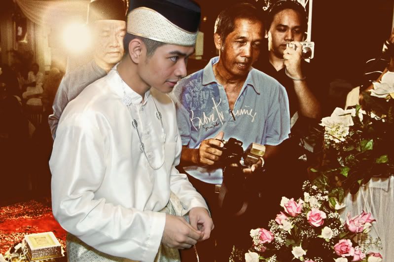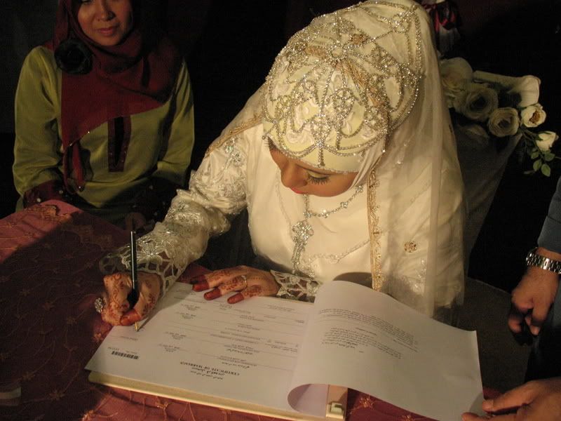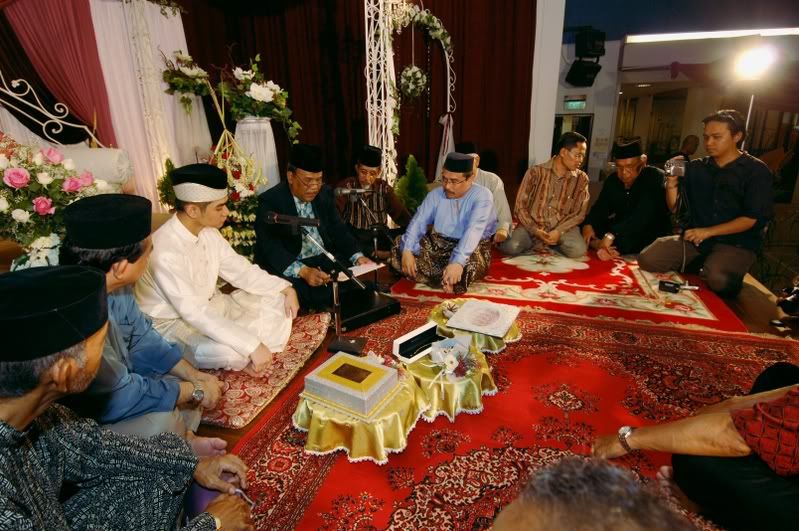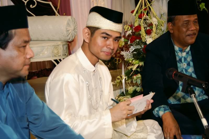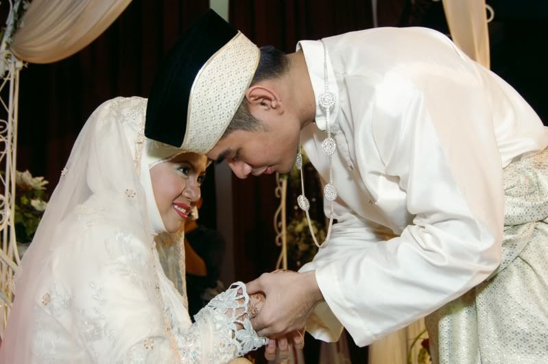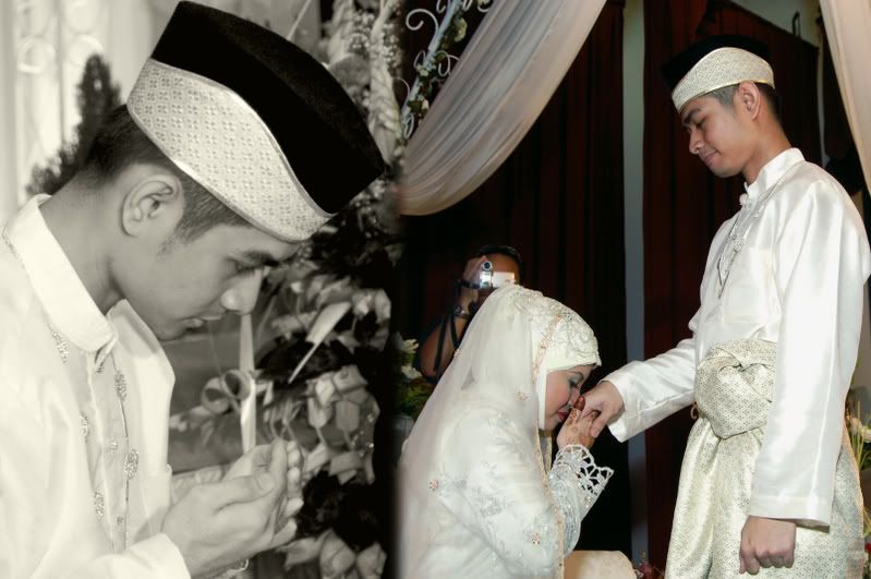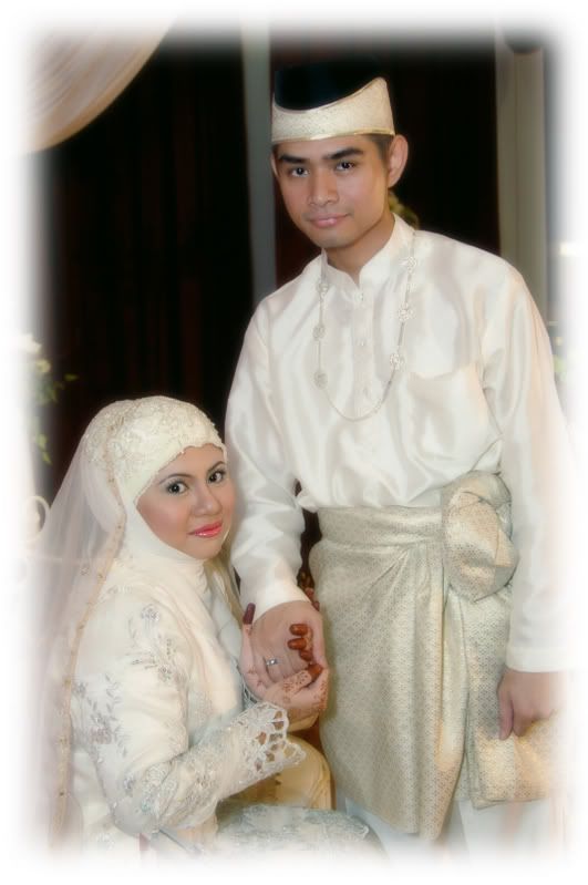 My gifts for my Darling, exclusively made by Kak Anis from Innovazione.. :D Gifts for Me from my Darling, exclusively made by his aunt.. :) More gifts for me.. :D As I entered e CC, people kept teasing me! Malu la!! Lovely setting.. My daddy did the honours of marrying me off..I was busy trying to keep calm under the strong spotlight and glances of the guests..My mak andam told me, 'Adik, your abah nikahkan you.' I said, 'No, I dont think so.' Then, she told me to look at my dad..Goodness!! Noone knew my daddy was going to do that!! Hehehe!! What a pleasant surprise!! So how many times did my Darling had to recite? One, baybeh!! My dad had to recite 3 times!! Hahaha!! Tu la, never practice in advance! Abah, you really surprised all of us!! Signing away happily.. Signing my life away happily too.. :) We're married!! Alhamdulillah!! Oooohh!! Darling (now can be called Hubby) is approaching me!!  :) Pucker up, buttercup! First halal-ed kiss.. ;) Hubby putting on my maskawin(bracelet).. After I sarungkan his cincin.. :) Two beautiful souls have finally became 1..Alhamdulillah.. I absolutely love this pic!! 2nd outfit for the solemnization night.. The Zaren family with the latest member.. :) My granduncle and his wife who came all the way from KL to attend my wedding.. :)There are lots and lots more pictures to share..And I shall share them soon..Got to go now!! Need to get ready to sembah-sembah..Tata!!! :*