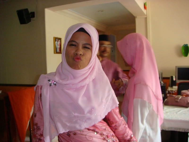 Yup!! If you had noticed, she is wearing the exact baju again!! Just undo the folds and change the kain..Hehehe!!