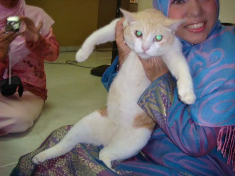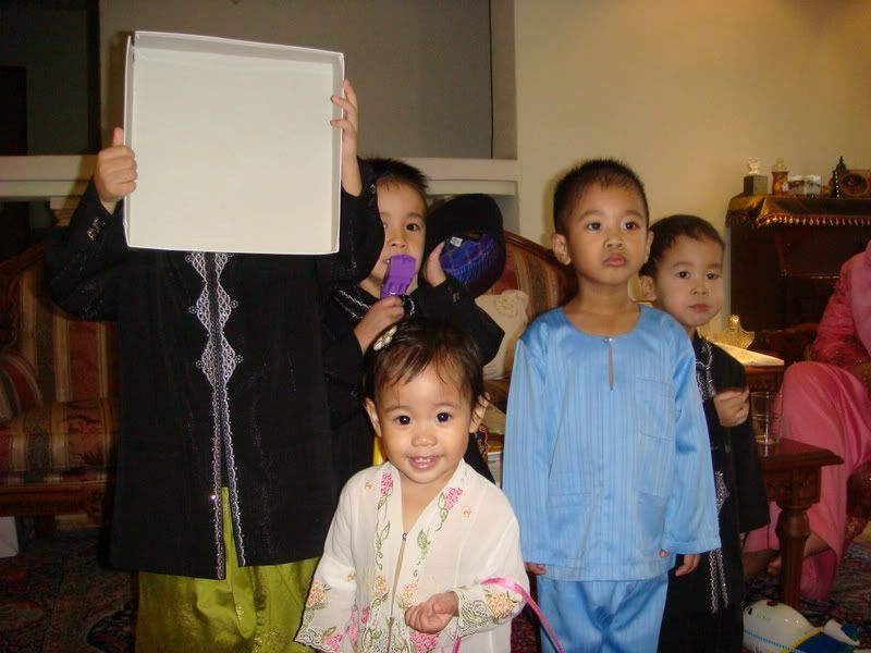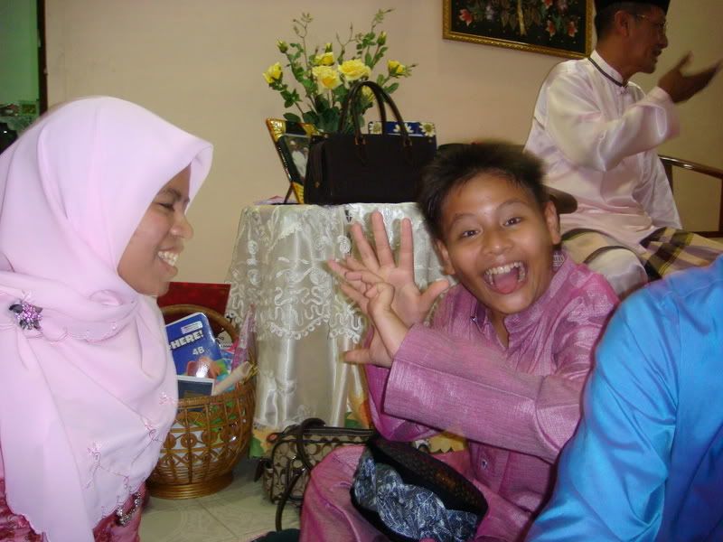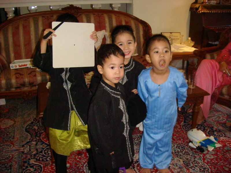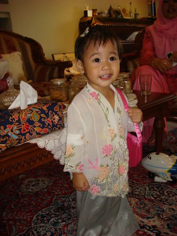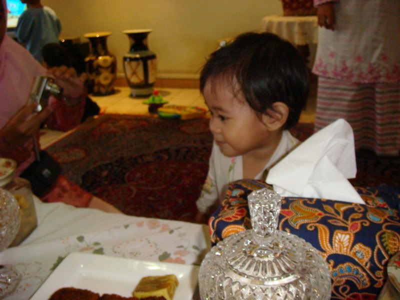 Hate one nasty encounter tho..A lot of ppl flock to my eldest's aunt's house since my mum's parents passed away and she is the eldest..So when we arrived, there were other guests, besides Sakz's family..My uncle's family was there..I was about to salam his wife when she immediately placed her hand on my tummy!!!! Wah liau!!! I was outraged and momentarily shocked at her atrocity!! How dare she!! As soon as I regained my senses, I moved away and told her that I am not pregnant.. :S