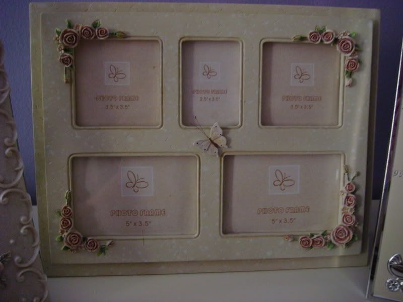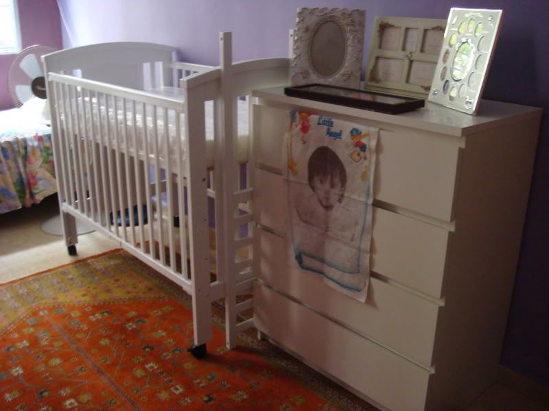 Remember when I mentioned that we bought a white chest of drawers for Peanut? I found some frames and placed them on top of that chest of drawers..I know there will be a gazillion pics taken of my Peanut and I have frames for them! :)